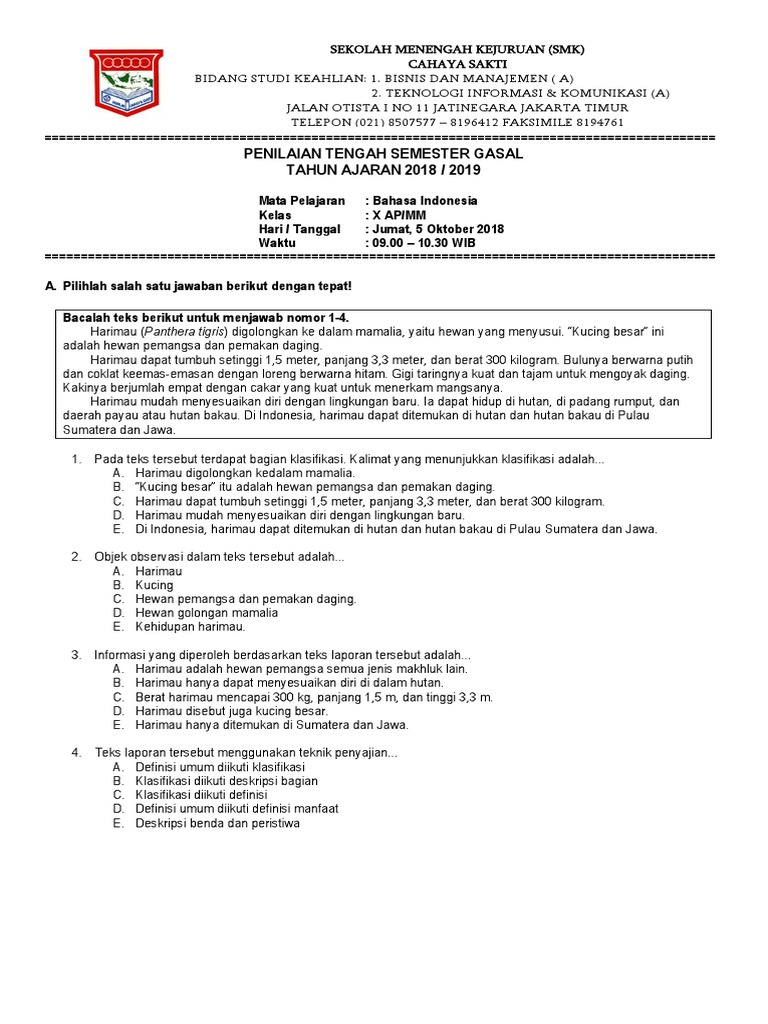 1 Informasi Yang Diperoleh Bedasarkan Teks Laporan Tersebut Adalaha Harimau Adalah Hewean Brainly Co Id
